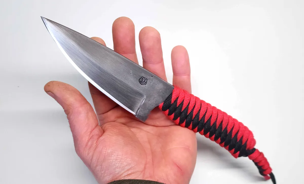 Le manche en paracorde rouge/noir assume l’esprit minimaliste : prise en main ferme, look tranché, et une simplicité qui colle à l’usage outdoor. C’est un couteau pensé pour les petits travaux de camp, la préparation du bois, la découpe utilitaire, et tout ce qu’on fait au bivouac quand on veut un outil fiable, compact, et sans chichi.